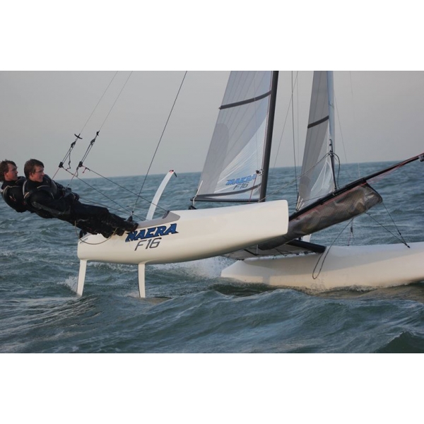 Développé en collaboration avec les architectes Morreli & Melvin, le Nacra 16 est doté de coques "perce-vagues" volumineuses pour atteindre des performances élevées.